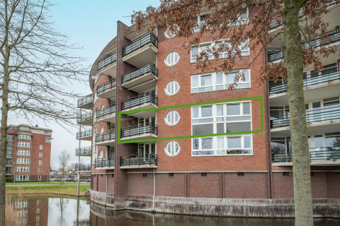 2e Verdieping: Hal met videofoon, toilet en inpandige berging. Heerlijk lichte woonkamer met veel ramen en met een deur naar het vrij gelegen balkon. Vanaf het balkon heeft u een prachtig weids uitzicht. De open keuken beschikt over een koelkast, vriezer, kookplaat en een vaatwasser. Twee keurig afgewerkte slaapkamers van respectievelijk ca. (456 x 331 cm.) en (193 x 456 cm.) beide met een schuifkastenwand en met toegang tot het balkon. De badkamer heeft een wastafelmeubel, designradiator, douchecabine en de wasmachine aansluiting.